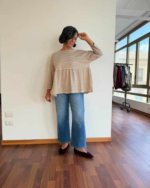 Maglia in jersey con balza sotto il seno.