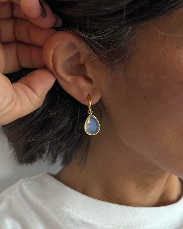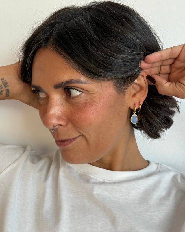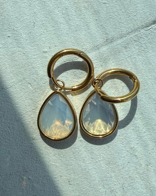 Orecchini a cerchio con goccia con pietra bianca opaca.