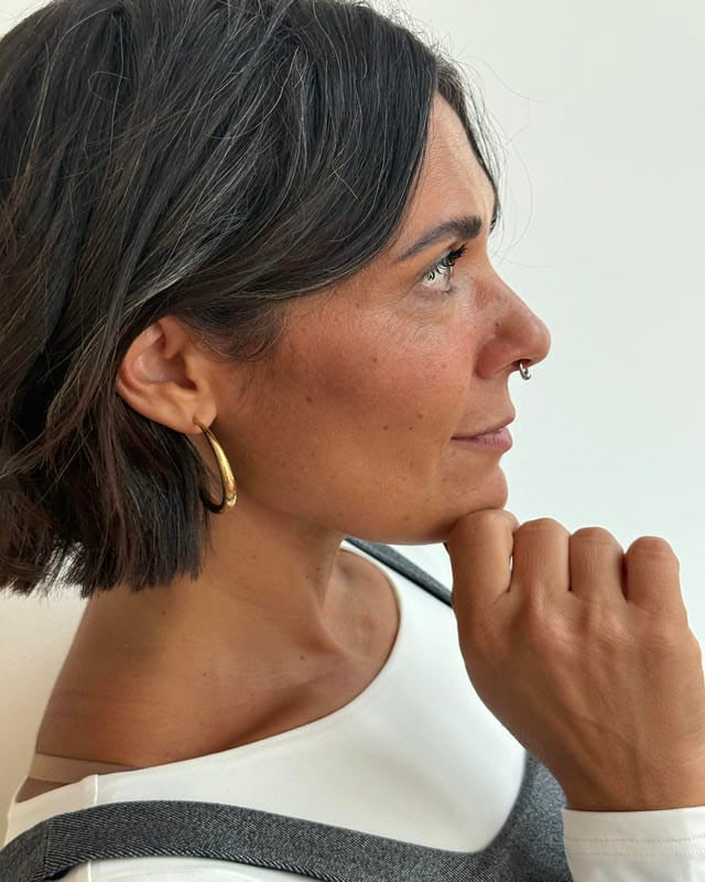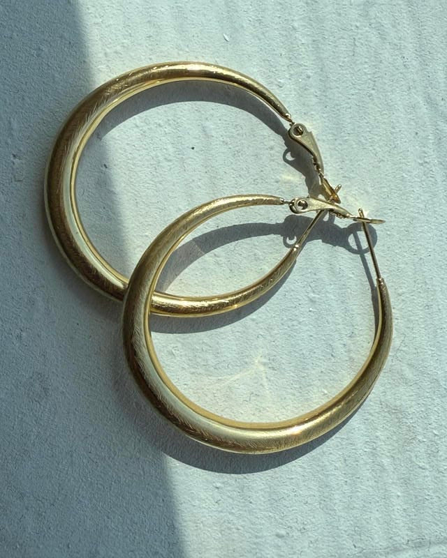 Orecchini a cerchio in acciaio inossidabile color oro spazzolato.