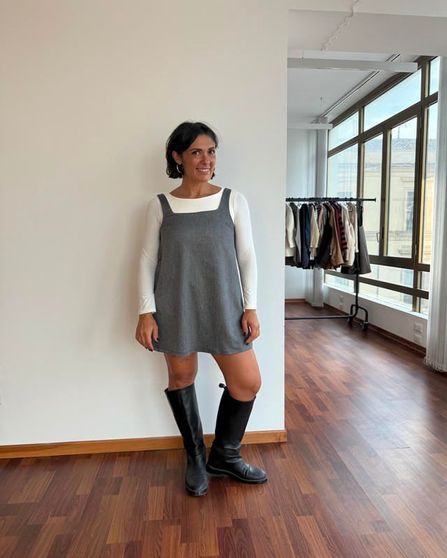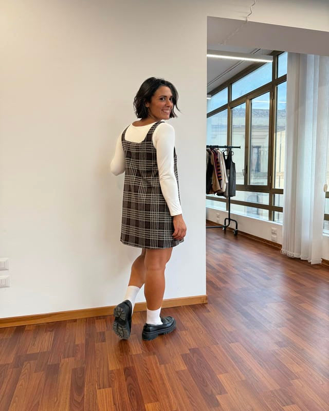 M: seno 94 cm, lunghezza 82 cm. Veste la taglia 44