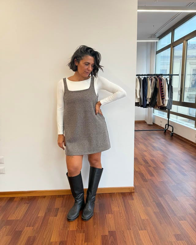 L: seno 98 cm, lunghezza 83 cm. Veste la taglia 46