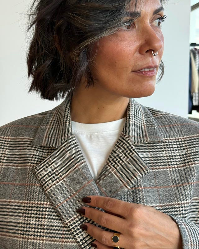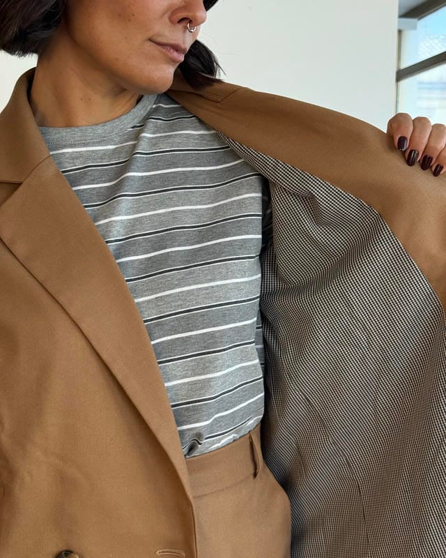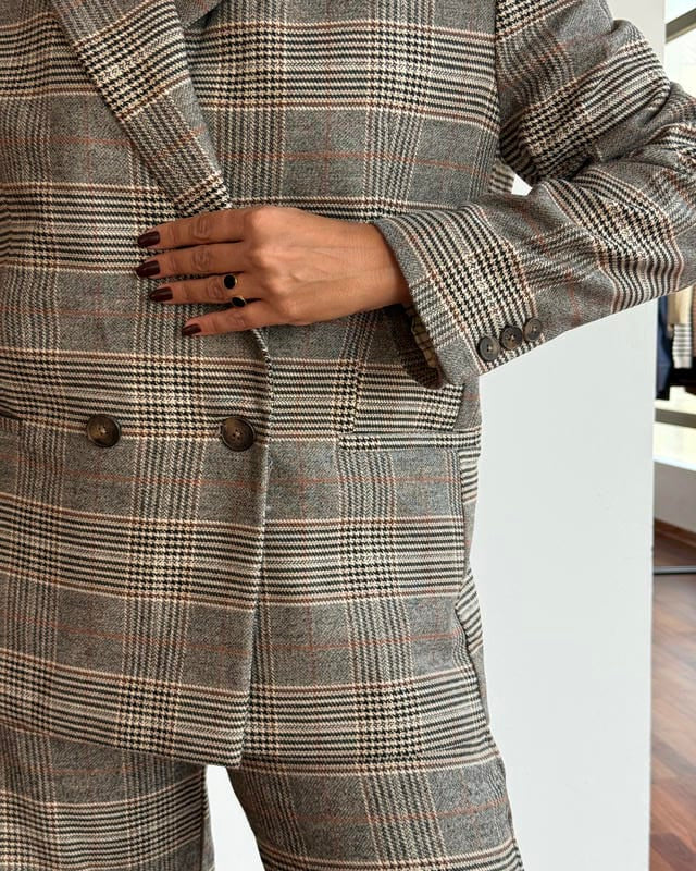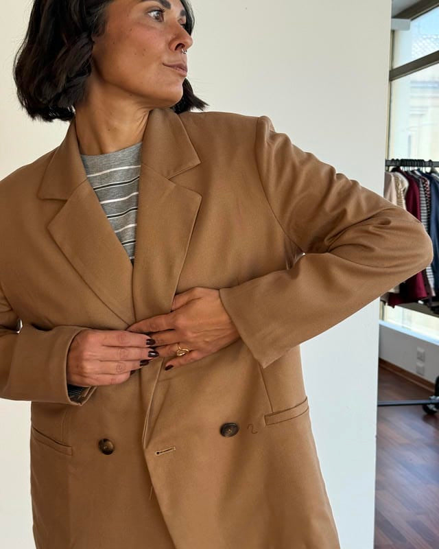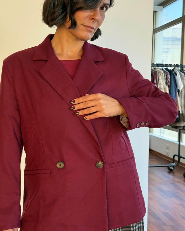 Blazer doppiopetto con collo a revers classico.