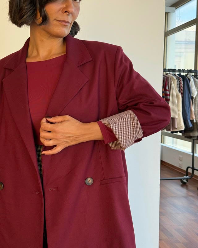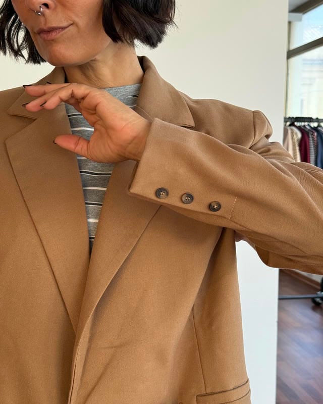Chiusura frontale doppiopetto con bottoni.