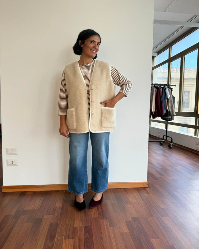 M: seno 116 cm, lunghezza 72 cm. Veste la taglia 44